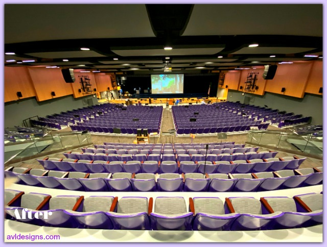 The high school auditorium was aged, and not well suited acoustically for most of the program. Top priority for this project was to improve the acoustics, and next in line, was developing the technical: audio, AV and lighting.