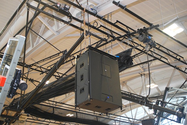 A recent upgrade to the field house included a Danley Jericho Loudspeaker System to cover the main court as a seating area for large events. The Jericho is a one box solution that provides the output of a large line array system without the physical size and cost of system of that type. Results were spectacular and to spec.