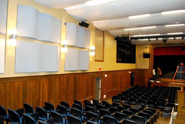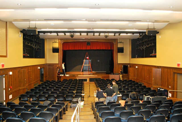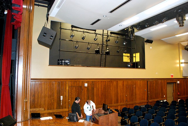 Sutherland Hall at Penn State University’s Abbington Campus houses a classic show box recital hall with a stage which had been converted into a lecture hall. The university wanted to improve the space to accommodate a wide range of activities including: theater, music, rock concerts, and multimedia events. This called for challenging upgrades to acoustics, stage rigging, lighting, audio and AV systems. One of the more difficult aspects was installing all of this all to a wood framed building. Also included in the upgrade was a second space: a swimming pool converted into a lecture hall. Features: • Acoustical Design including optimized waveforms • New Audio system capable of high definition and high sound pressure • level – Danley Sound Labs Speakers and Subwoofers • Multi-tiered audio controls including automated and manual digital • consoles. • New ETC dimming systems, controls and LED lighting • New Stage rigging and motorized Cyc System