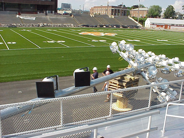 This 4,000+ seat stadium is an exceptional facility. The field is suited for combined use of football, soccer and track & field. The site is located adjacent to residential areas and across the Susquehanna River from Vestal Stadium, which often runs concurrent games. The audio system required controlled coverage, high fidelity audio for music, speech, field announcing and special events. The system design required high sound pressure to the stands, with minimal bleed to adjacent areas. The control system is DSP-based with broadcast interfaces for press, headsets and head mics for announcers, and preset configuration changes for types of events. There are presets for all of the different settings and modes. The sound booth itself has direct control over music quality for audio and for speech. There are also direct feeds from the system for the media. Since the stadium is open to the weather, AVL’s design included a unique characteristic for use In the winter: a low-level pink noise signal that runs through the system to keep the voice coils from freezing. Sound web controllers continuously keep this signal running, which allows the system to be turned on without damaging any speakers even in very cold weather.