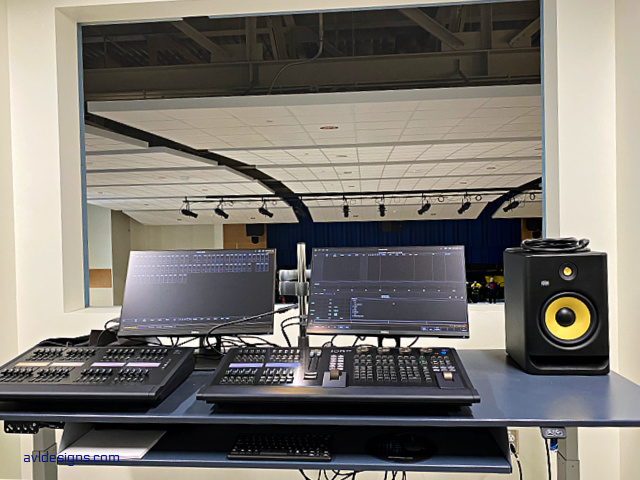 New auditorium and renovated LARGE GROUP INSTRUCTION center. AVL Designs Inc. did the original project on the LGI as well as auditorium renovations at Thomas and Schroeder High Schools in the past. We were contracted again for the new auditoria at Spry and renovation to the LGI.